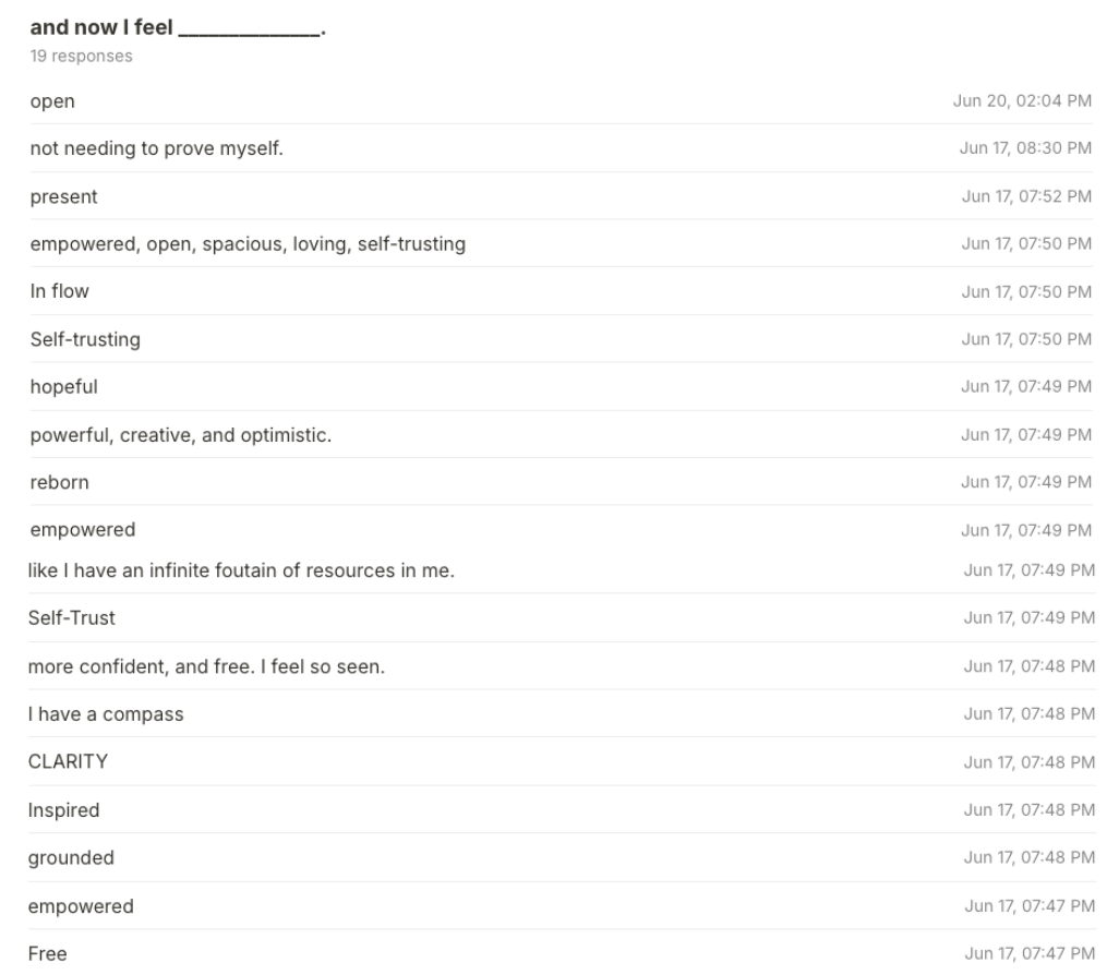 "I healed a deep abandonment pattern I had since childhood… Life has slowed down. The noise of my restlessness has quietened. I am trusting the process again."