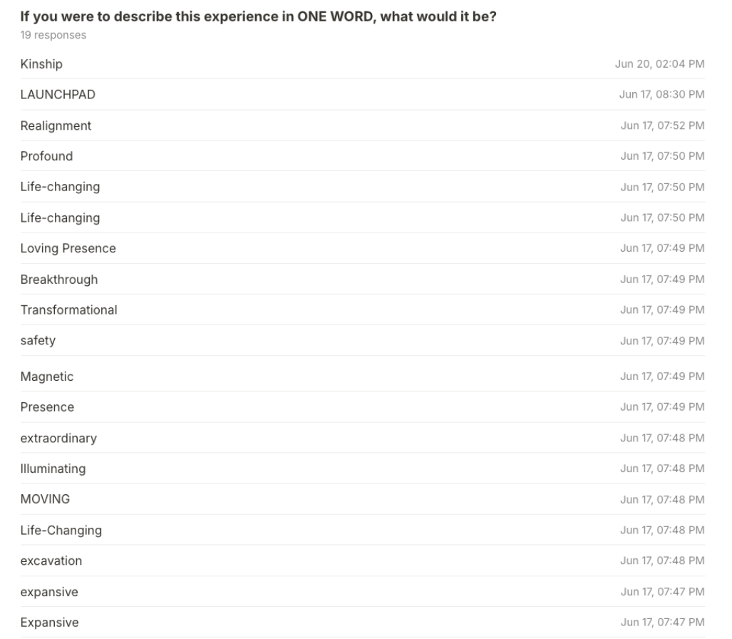 "I received the encouragement that I was hoping for and so much more. I'm more present and more self-aware… Slowing down was life changing. I finally felt permission to walk my path at my own pace."Mariana (BTC 4):